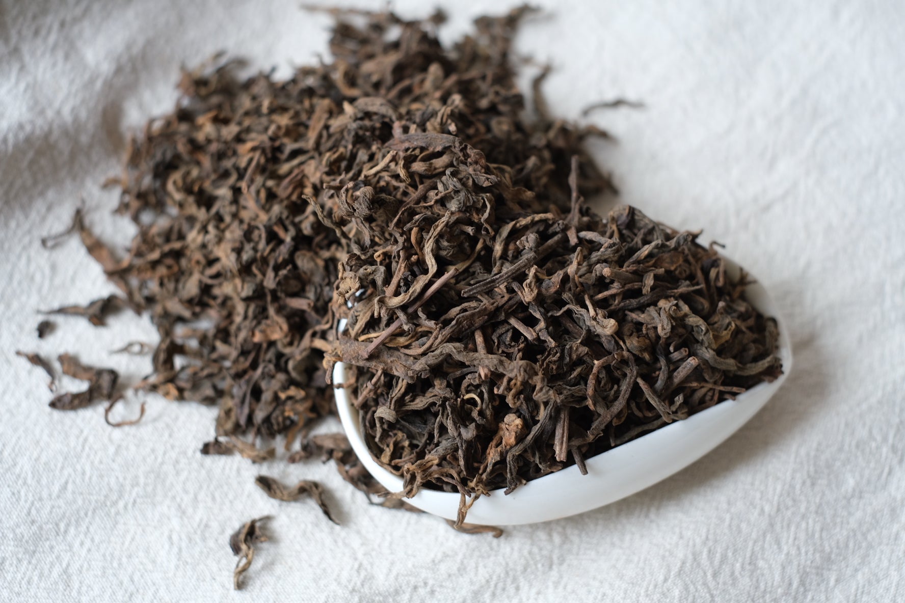 We were surprised by how good the tea turned out. Right out of the basket, it has a very pleasant fermentation smell. It usually smells like a trash can: rotten vegetable; but here, it smelled fruity. This fragrance has now almost disappeared. The fermentation was medium-light, the wet leaves look almost like mao cha, they weren't degraded much by the fermentation process.