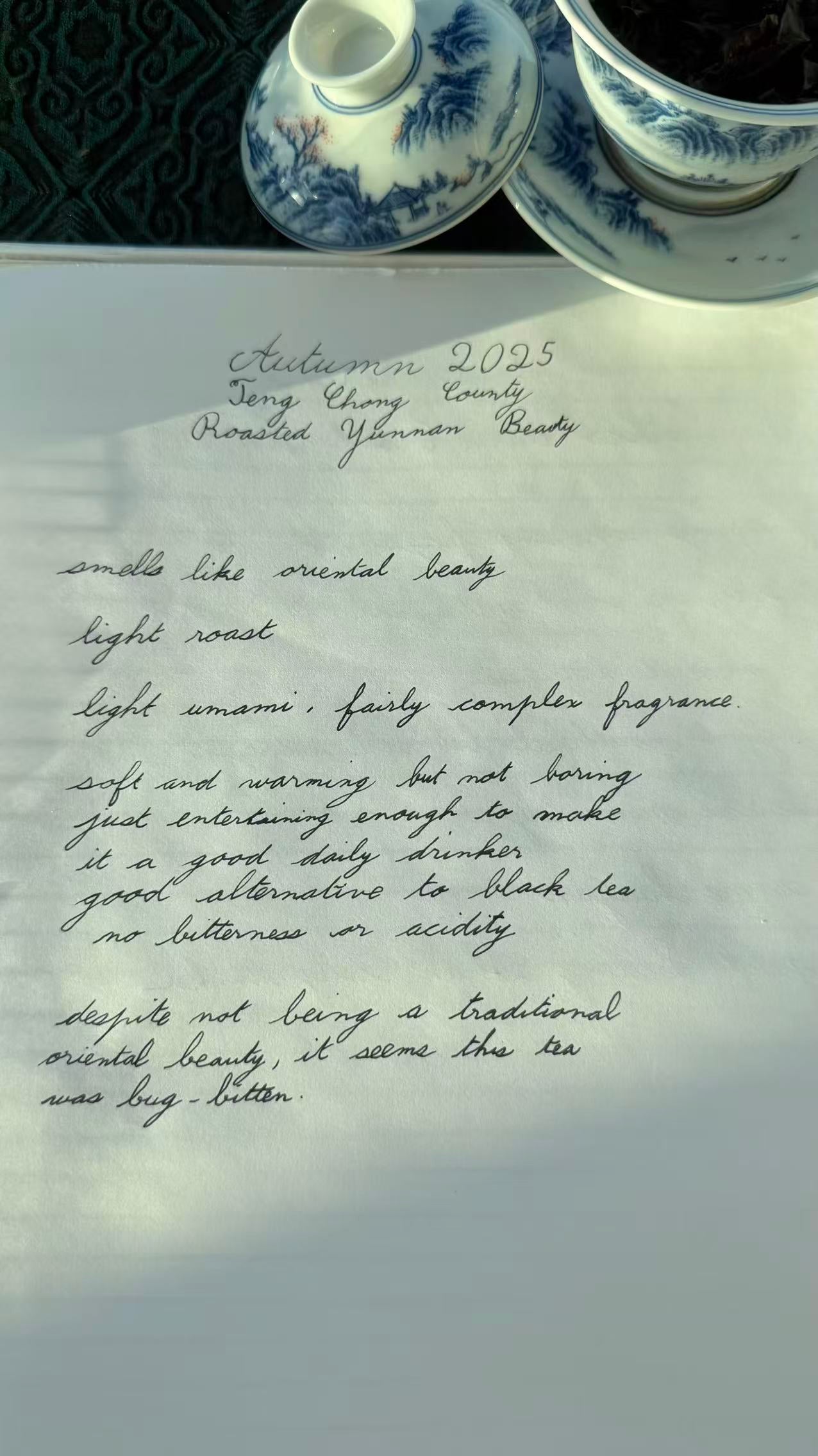 In Autumn 2025, Mr Zhong, who mainly makes our Fen Shui Lin teas, has traveled to Baoshan, in the North West of Yunnan.