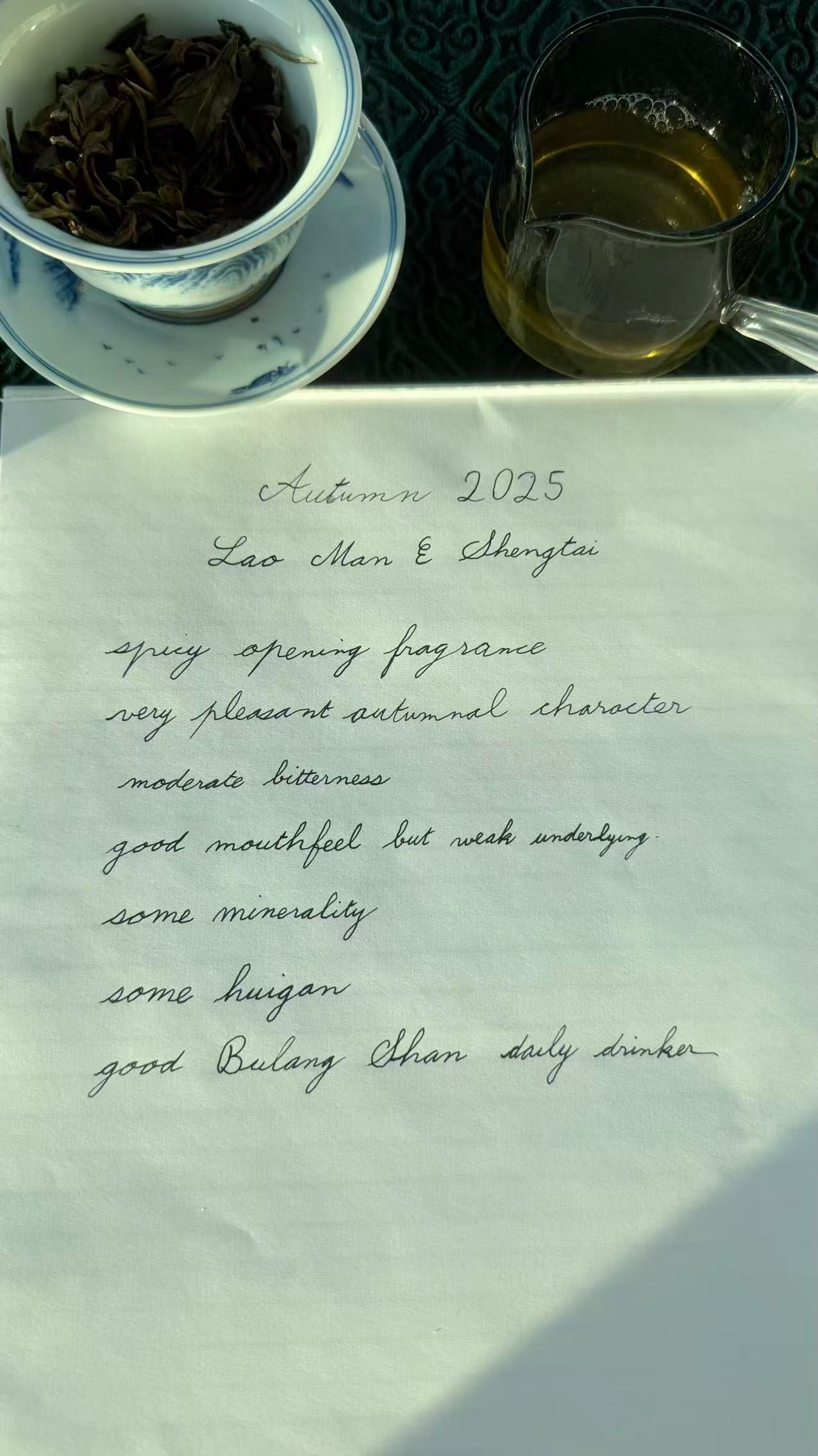 Perfect Menghai daily drinker: moderate bitterness, some huigan and minerality, good fragrance