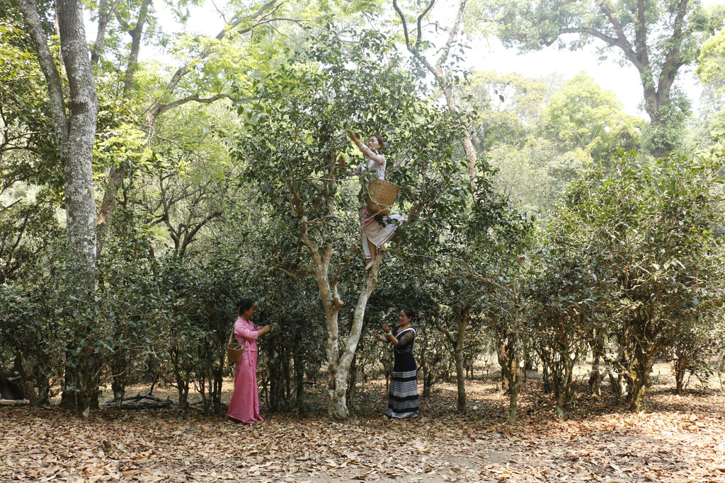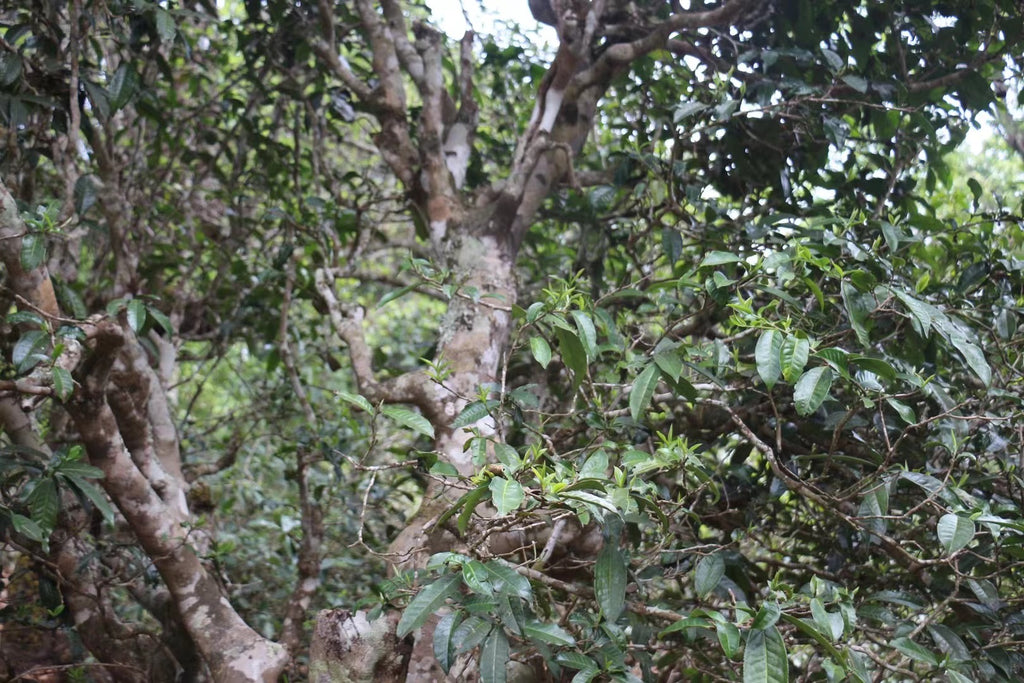 Jingmai has the largest ancient tea gardens in the world, however, many of those gardens are mostly populated by relatively recently planted trees. Most tea trees will die within a century, succumbing under the pressure of pest attacks and harsh climate. Due to favorable genetic and environmental factors, some individual make it through the years. We don't know how old these trees are, we can see they are tall and strong to the point you have to climb on the trunk and branches to harvest them. This is how we define 'single tree tea' or ‘Danzhu' as we call them in Jingmai.