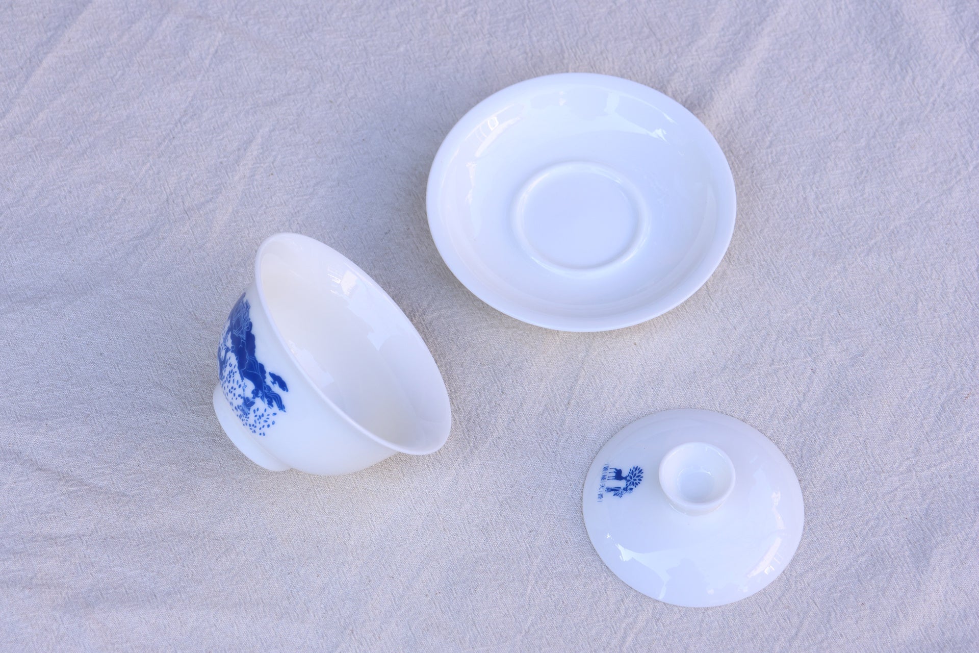 This is a custom-made Gaiwan we ordered from Jingdezhhen. The walls are quite thick, which gives it sturdiness, it won't chip too easily. There is nothing fancy about this, it is perfect for daily brewing. It contains 175ml of water to the lid, which makes it medium sized and suitable for up to 6 people, but can perfectly be used on your own if you're a heavy drinker.